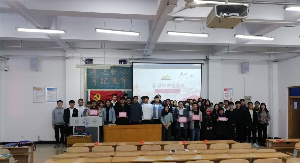 为在“不忘初心、牢记使命”主题教育中进一步做好“开门抓教育”,促进党团共建,bv伟德国际1946官网信息管理党支部于2019年11月14日在逸夫楼B303教室举办“不忘初心,牢记使命”主题教育知识竞赛总决赛。信息管理党支部成员及120余名同学观看本次比赛。