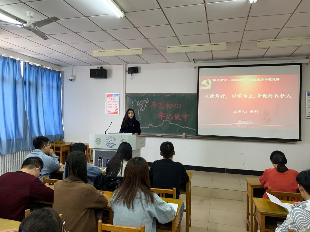 2019年10月31日,bv伟德国际1946官网信息管理党支部书记为支部党员、积极分子讲授“不忘初心,牢记使命”专题党课。