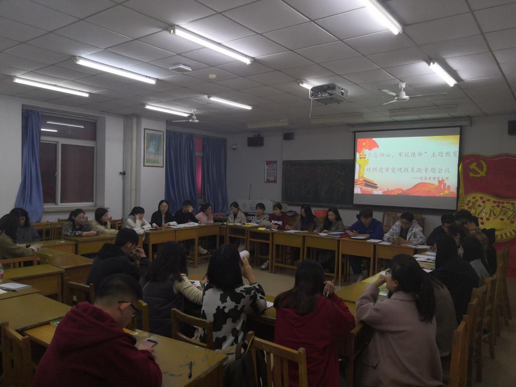 2019年11月7日,信息管理党支部召开“不忘初心、牢记使命”主题教育对照党章党规找差距专题会议。bv伟德国际1946官网副经理黄立明到会指导,支部全体党员、发展对象、部分积极分子参加了会议。