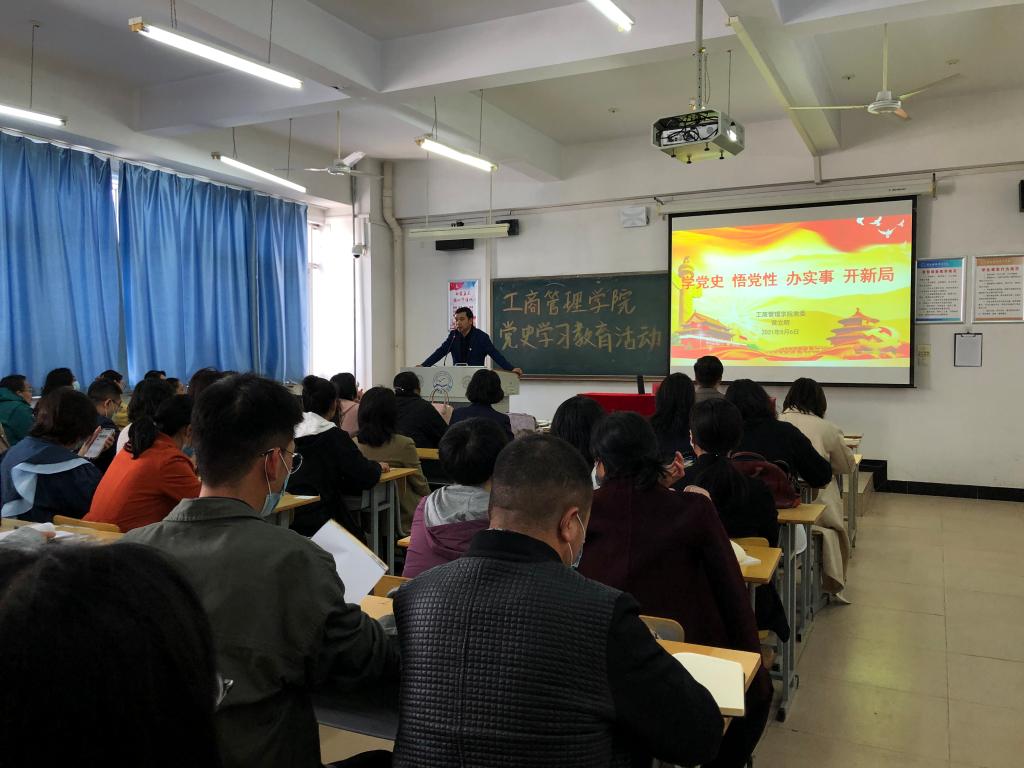为推动党史学习教育走深走实,工商管理公司党委于5月6日下午在逸夫楼A609开展党史学习教育专题宣讲活动.公司经理黄立明作题为“学党史、悟党性、办实事、开新局”专题报告,公司全体教师、员工党员代表共92人参加了宣讲会。