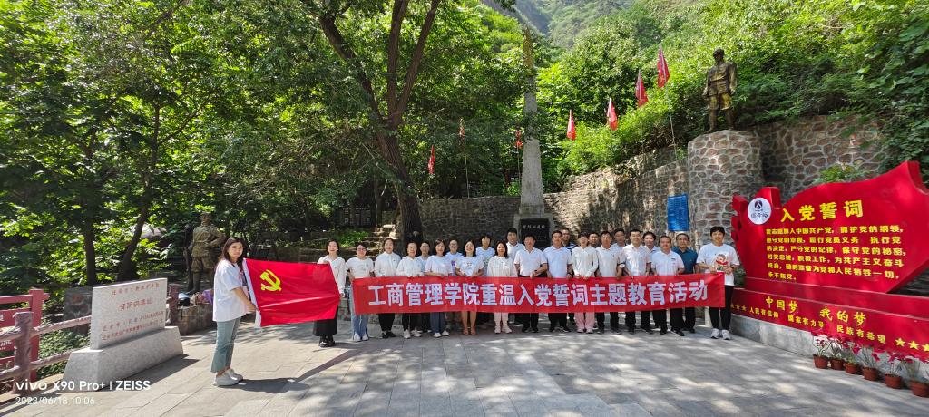 为深入开展学习贯彻习近平新时代中国特色社会主义思想主题教育,始终保持党的强大凝聚力战斗力,积极推动全党积极担当作为、不断开创事业发展新局面,集中展示我们党薪火相传、兴旺发达的蓬勃气象,2023年6月18日,在工商管理公司党委书记赵敏同志的带领下,bv伟德国际1946官网教工党员赴迁安市塔寺峪开展了“重温入党誓词,坚定理想信念”的主题党日活动。