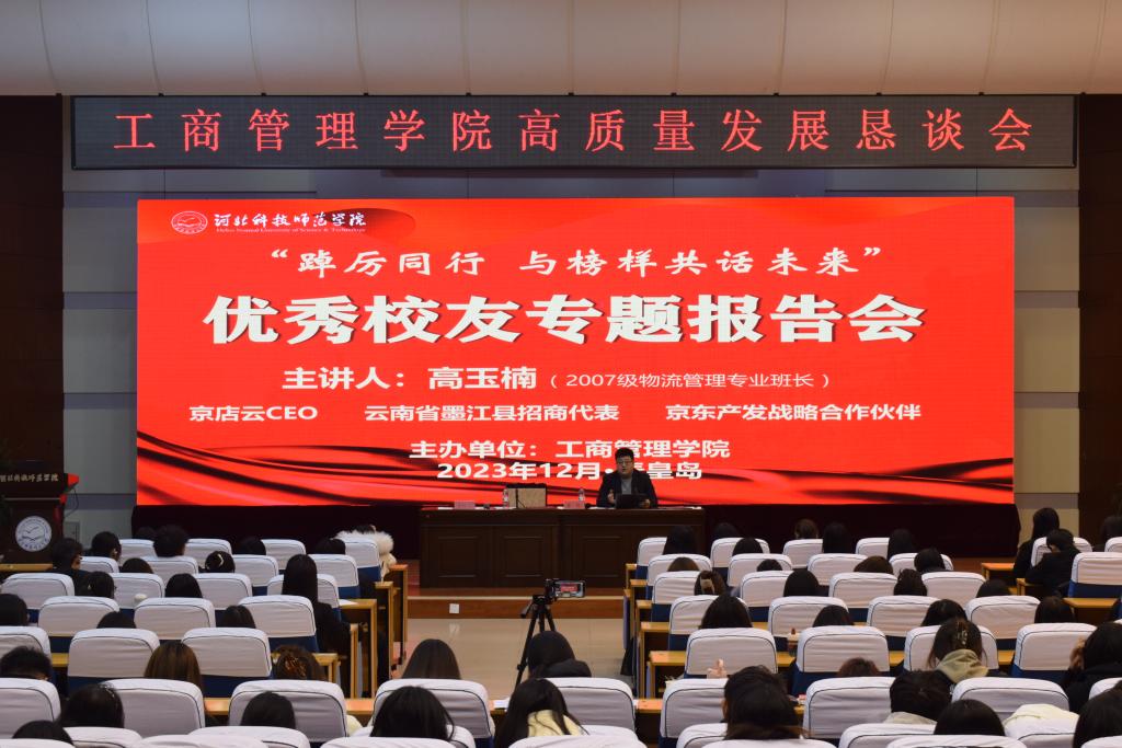 bv伟德国际1946官网邀请优秀员工—2007级物流管理专业毕业生高玉楠,现北京京店云科技有限公司CEO,在公司会议室开展优秀员工“谈高质量发展”座谈会。公司领导班子、物流管理专业教师和就业负责人,分别就员工资源利用、团队建设、人才培养等进行了深入交流,双方在校企合作、员工实习与就业、员工会建设、人才供应链建设、“青创营”培训、“京东研学”等方面达成共识。