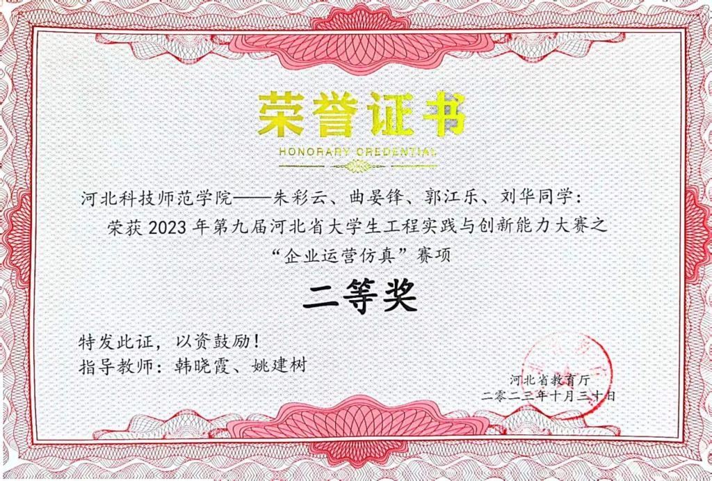 近日,接到河北省教育厅获奖通知,bv伟德国际1946官网6名选手在第九届河北省老员工工程实践与创新能力大赛暨2023年全国老员工工程实践与创新能力大赛选拔赛中,获得“企业运营仿真”赛项的一等奖、二等奖,这是公司首次参加此项赛事。