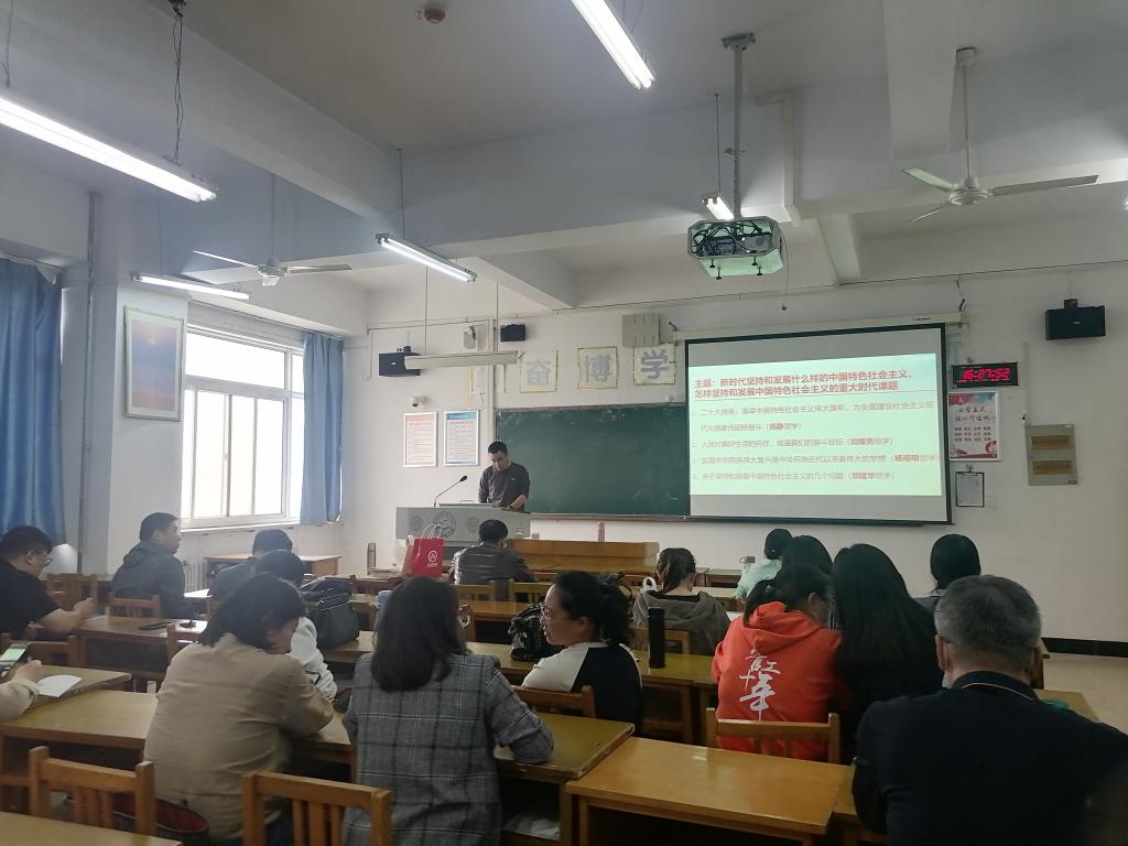 全国上下如火如荼开展学习贯彻习近平新时代中国特色社会主义思想主题教育之际,bv伟德国际1946官网教工党支部根据《bv伟德国际1946官网教工党支部深入开展学习贯彻习近平新时代中国特色社会主义思想主题教育方案》的安排,于2023年5月11日下午在逸夫楼A601开展了主题为“新时代坚持和发展什么样的中国特色社会主义、怎样坚持和发展中国特色社会主义的重大时代课题”的读书会活动。