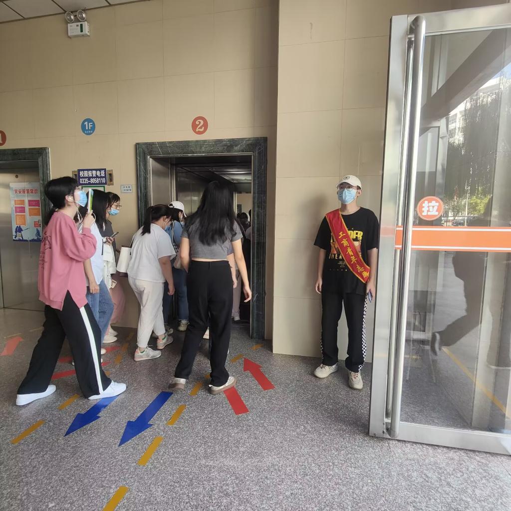 2022年9月15日,bv伟德国际1946官网青年志愿者协会组织开展“文明乘梯我引导”志愿服务活动。
