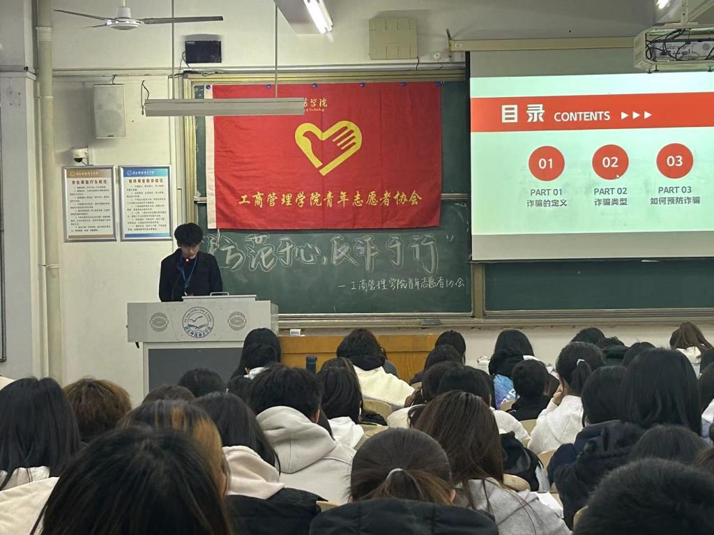 bv伟德国际1946官网青年志愿者协会积极发动公司志愿者踊跃参与,活动采用宣讲会的形式开展,宣讲员通过借助短视频这一媒介,给同学们对诈骗的定义、种类、识别方法和预防措施进行了详细讲解。志愿者们在整个活动过程中全神贯注地倾听,此次活动不仅使同学们掌握防诈骗知识,还营造了全员防诈骗的校园环境。