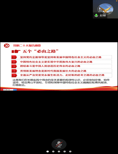本次活动由工会主席韩晓霞主持,由党委书记赵敏带领大家原汁原味原文再一次重温二十大报告,讲到党的二十大是全党全国各族人民迈上全面建设社会主义现代化国家新征程、向第二个百年奋斗目标进军的关键时刻召开的一次十分重要的大会,会议全面总结了五年到十年来以习近平同志为核心的党中央团结带领全国人民的奋进历史和辉煌成绩,明确了未来五年乃至更长时间的发展方向,我们必须全面学习贯彻党的二十大精神,以国家战略需求为导向,挖掘自身能力,深入专业研究。