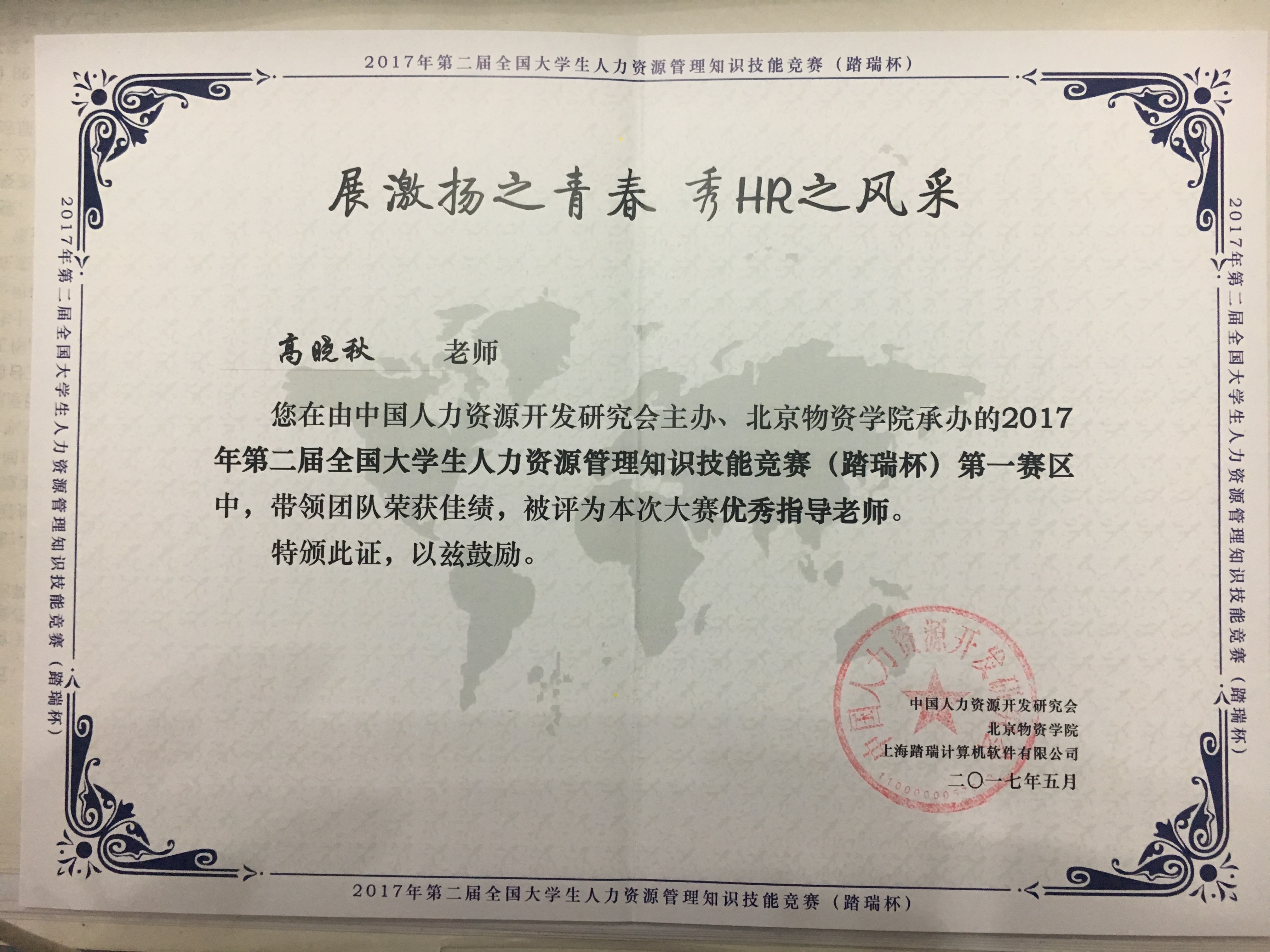 指导教师获奖证书
