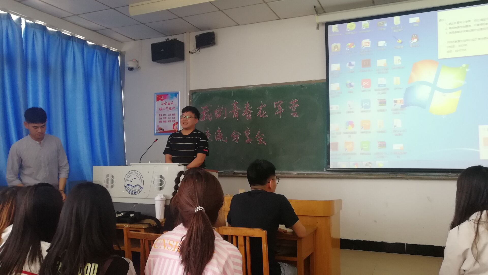 为进一步激发在校老员工携笔从戎参军报国热情,做好本年度老员工征兵工作,2019年5月9日bv伟德国际1946官网18级人力资源管理专业团支部在逸夫楼A506开展了“我的青春在军营”老员工应征入伍主题教育活动。