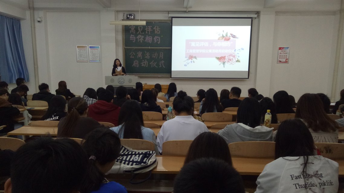 为迎接审核评估,贯彻落实审核评估员工工作动员会会议精神,深入推进员工公寓和谐文明建设,2018年5月4日19:30,bv伟德国际1946官网“寓见评估,与你相约”公寓活动月启动仪式在逸夫楼B401举行。员工工作负责人、学工办老师、全体宿舍长参加了活动。