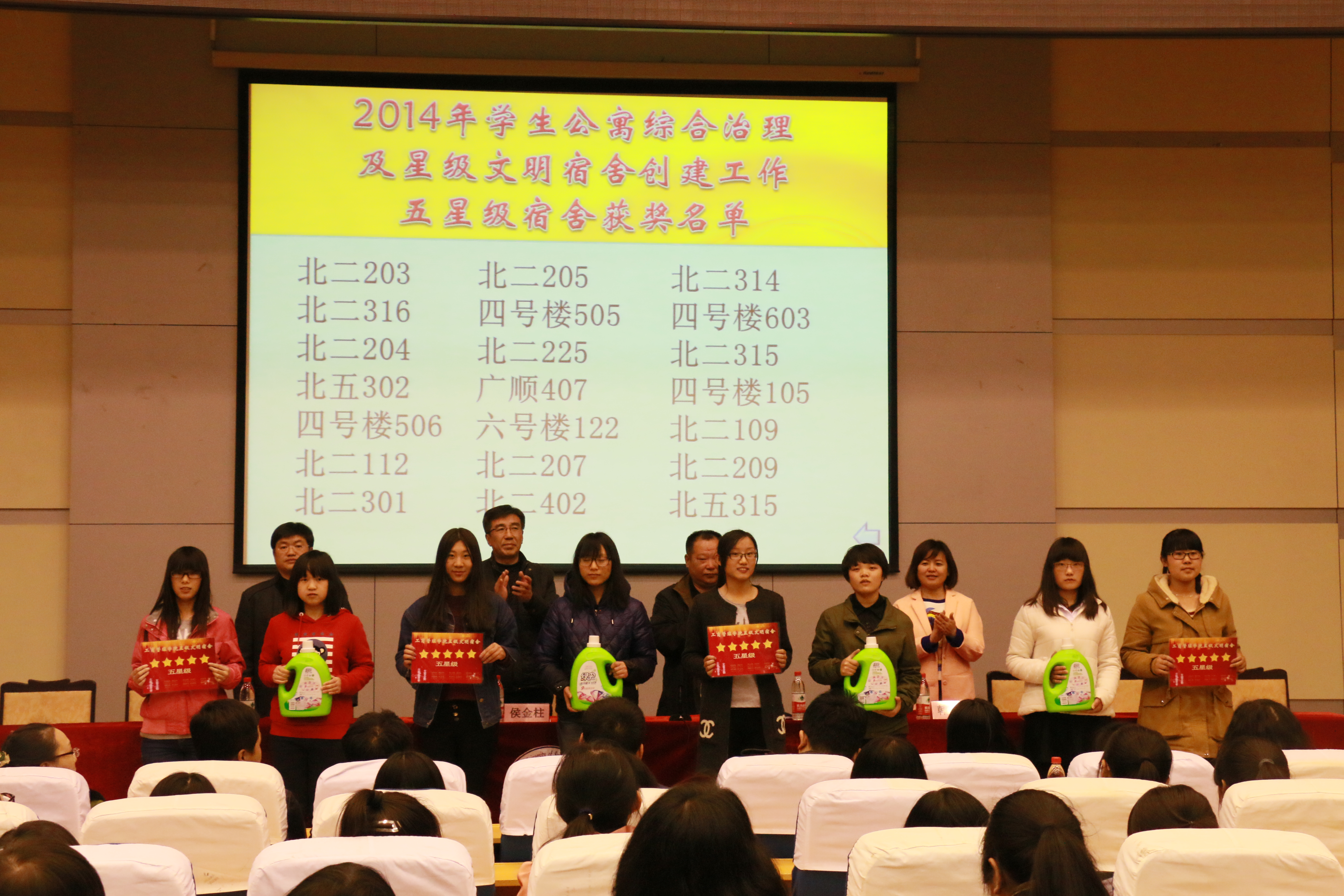 2015年4月7日晚七点,bv伟德国际1946官网在学术报告厅举行2014年员工公寓综合治理及星级文明宿舍创建工作表彰大会。出席本次大会的有员工处副处长徐树军,工商管理公司党委书记侯金柱,党委副书记、副经理赵敏,以及全体辅导员和班主任老师。