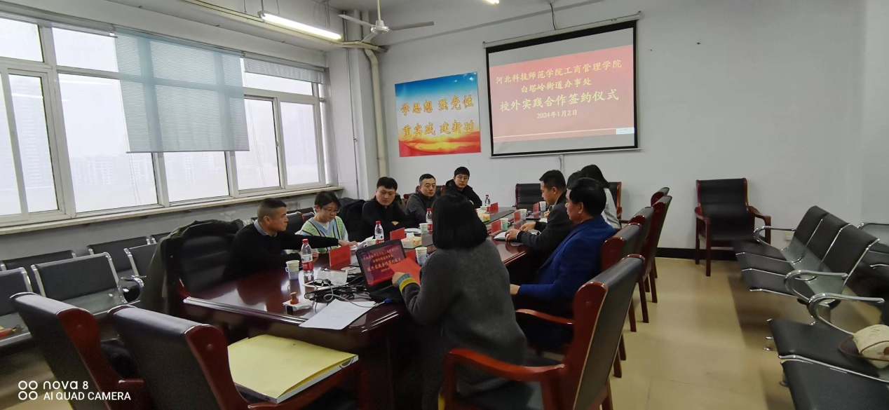 2024年1月2日下午,bv伟德国际1946官网与秦皇岛市白塔岭街道办事处校外实践合作协议签约仪式在逸夫楼608会议室举行。出席本次签约仪式的有bv伟德国际1946官网领导班子成员及人力资源教学部教师代表,白塔岭街道办事处党工委书记、党工委副书记、办事处主任、组宣委员及党建办主任等五位领导。