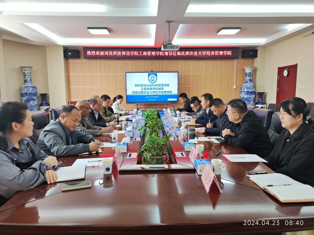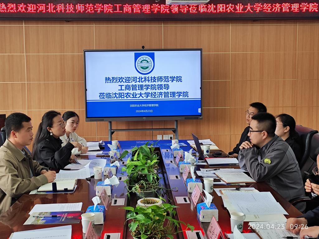 4月23日,bv伟德国际1946官网刘海滨经理带队赴沈阳农业大学经管公司就农业管理专业硕士培养进行交流学习。沈阳农业大学经管公司孟祥龙书记等8位领导和老师参加了交流活动。