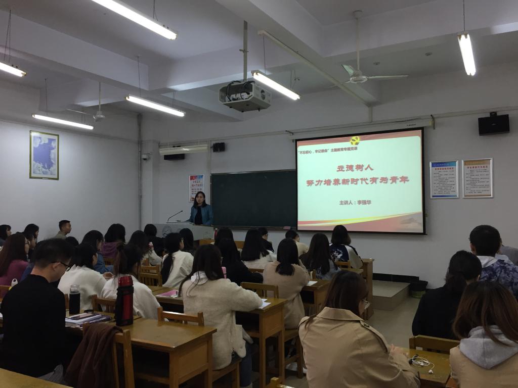 2019年10月23日,工商管理公司党委副书记、副经理李强华为辅导员、员工党员、预备党员、入党积极分子、员工干部讲授专题党课。党课以《立德树人,努力培养新时代有为青年》为主题,结合“不忘初心,牢记使命”理论学习和调查研究中的收获体会主要讲了:学习收获、认识与体会、工作中存在的问题与差距、解决问题的思考及措施。