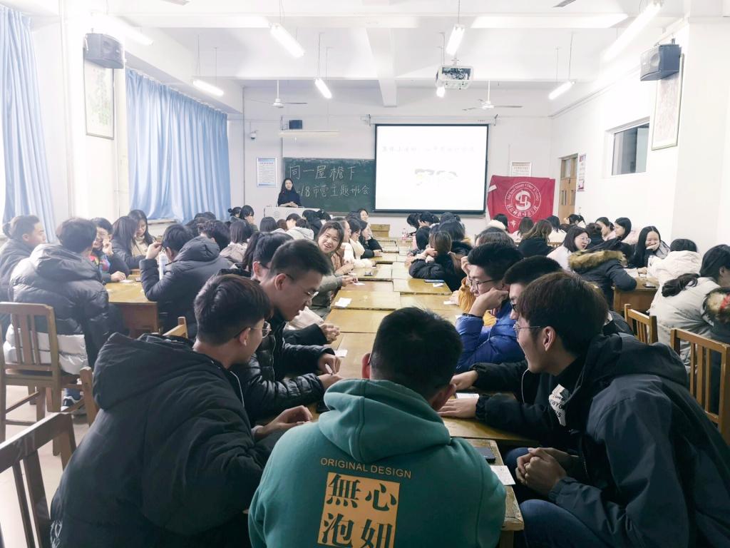 为增强班级凝聚力,深化班风建设,增强宿舍之间的交流沟通,2019年12月24日下午,2018级市场营销专业在逸夫楼A410召开以“同一屋檐下”为主题的班会。