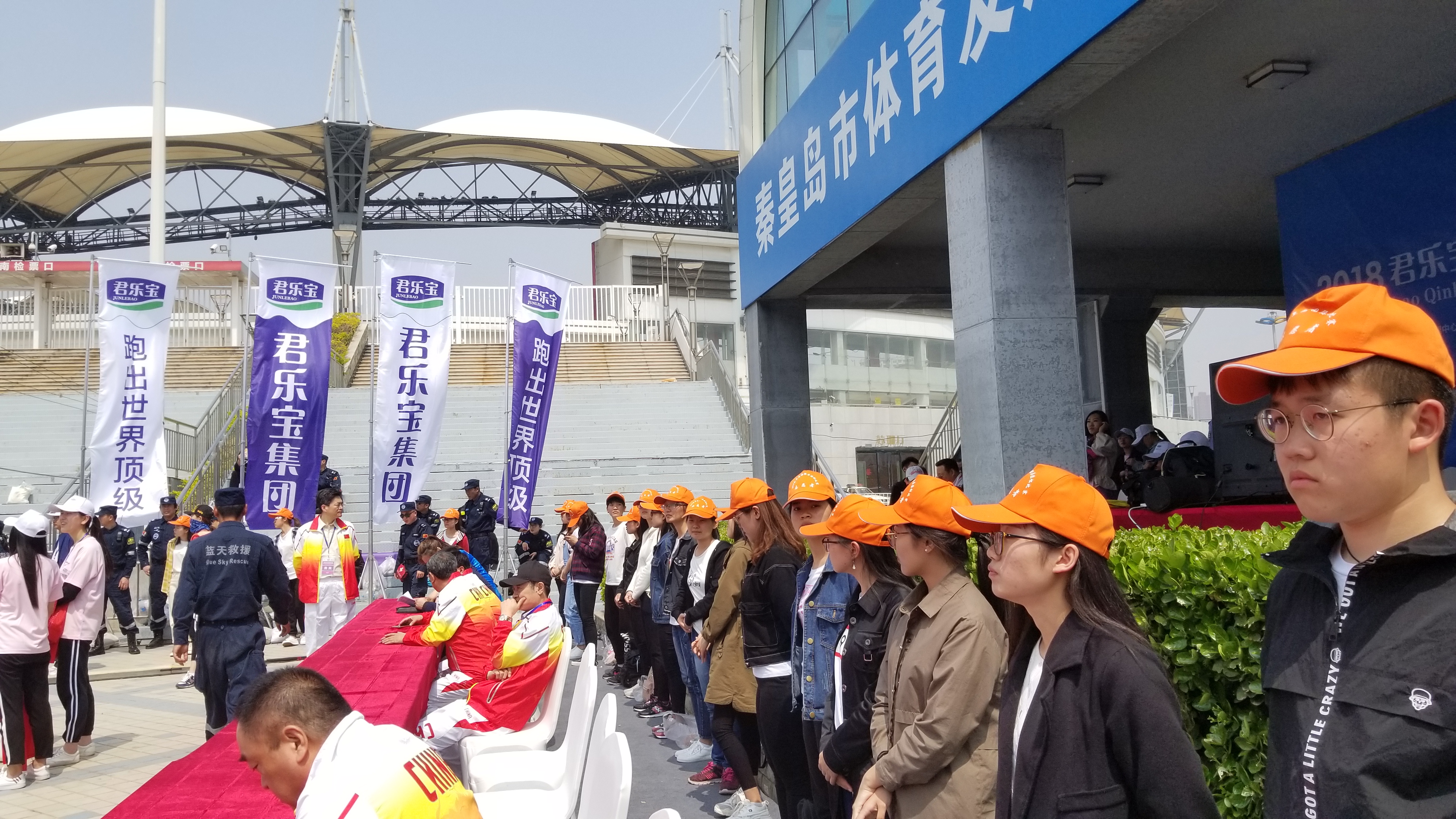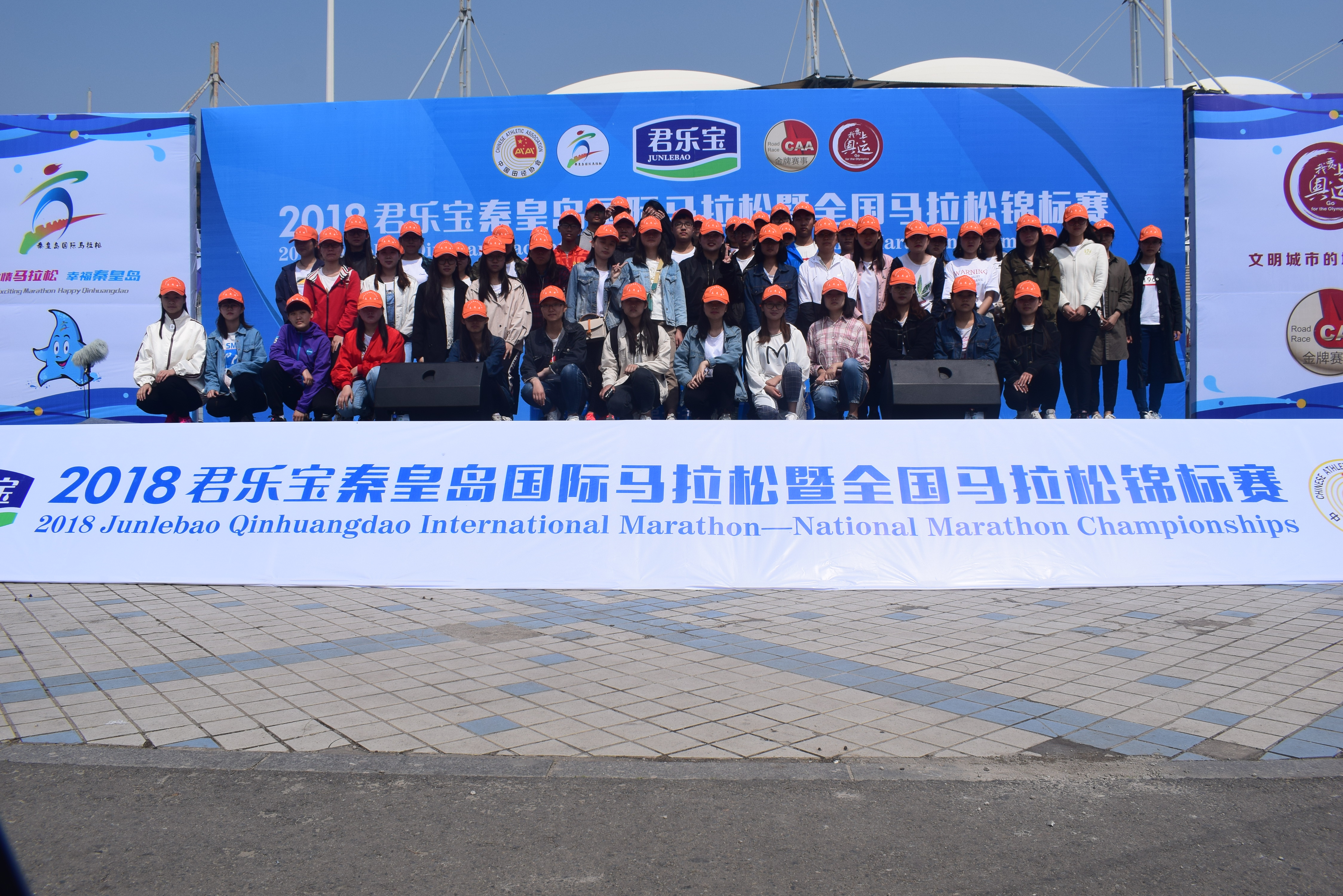 2018年5月13日早8:00,秦皇岛市举办秦皇岛国际马拉松暨全国马拉松锦标赛。bv伟德国际1946官网由党委副书记副经理李强华带队,学工办主任韩晓霞、专职辅导员赵卓、徐景升、班主任王涛四位老师带领200名马拉松志愿者对秦皇岛马拉松比赛进行赛道安保志愿服务。