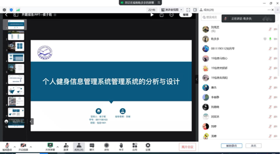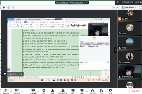 为了切实做好2022届毕业论文指导工作,2023年1月5日,信息管理与信息系统教学部举行了2019级信息管理与信息系统专业员工毕业论文开题答辩。为了照顾考研员工,教学部将原开题答辩时间延后至寒假期间,通过腾讯会议线上进行。根据指导教师回避原则分组,分为两个腾讯会议会场同时开展答辩。按照教学部部署,老师们早上7:40提前进入会场,重申答辩流程和注意事项。在答辩现场,同学们就自己论文的研究背景、研究目的及意义、研究内容及方法、课题预期成果及自身创新点等多方面进行阐述,老师们则在认真聆听后,对每一位员工存在的问题及后续工作提出了详细的修改意见。从研究内容到研究方法,从写作开题报告的格式问题到参考文献中的标点符号运用,从科研态度到治学精神,老师们都详细地指出问题、给出指导并谆谆教诲,同学们则纷纷表示受益匪浅。老师们提醒同学们要认真对待之后的论文写作,一定要端正态度,多与指导老师沟通,完成本科四年的最后一项重要工作,为自己的大学学业画上完美的句号。